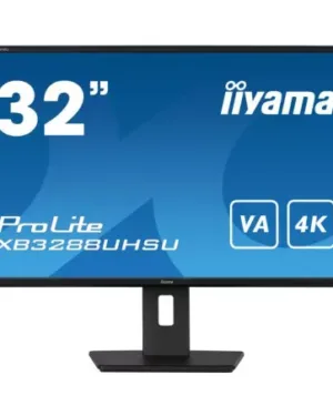Moniteur Iiyama 32" XB3288UHSU-B5 avec panneau VA, résolution Full HD, temps de réponse de 3ms, connectivité HDMI, DisplayPort et USB-HUB, socle réglable en hauteur.