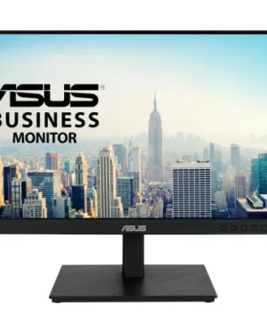 Moniteur tactile ASUS 24 pouces BE24ECSBT avec écran IPS-FHD, temps de réponse de 5 ms, fréquence de rafraîchissement de 60 Hz, connectivité HDMI/DP/USB, haut-parleurs intégrés et pied réglable sur 5 niveaux.