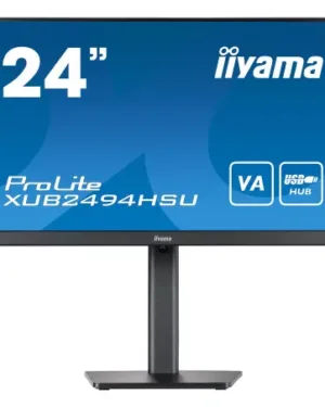 Le moniteur IIYAMA 24" *XUB2494HSU-B2* offre une technologie VA avec des connexions HDMI, DP, des haut-parleurs intégrés, un port USB et un temps de réponse de 4ms. Le pied est également réglable.