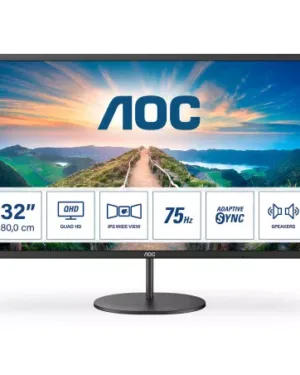 Le moniteur AOC 32" Q32V4 offre une résolution IPS de 4ms et un taux de rafraîchissement de 75Hz, ainsi que des connectiques HP, HDMI et DP.