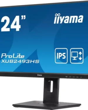 Moniteur Iiyama 24 pouces IPS XUB2493HS-B6 avec technologie UltraMin, temps de réponse de 4 ms, connectivité HDMI/DP, haut-parleurs intégrés et pied réglable.