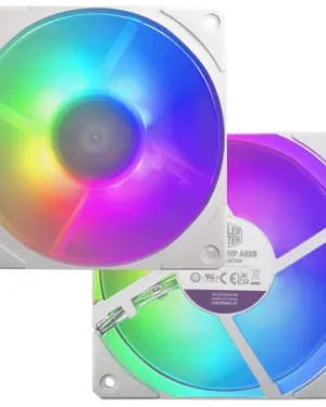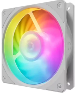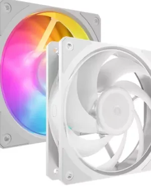 ‘COOLERMASTER Mobius 120P ARGB Édition Blanche’ est un ventilateur d’ordinateur avec éclairage ARGB.