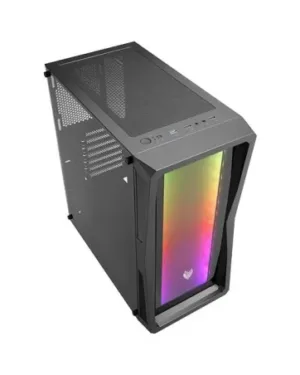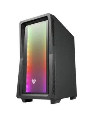 ‘BT FORTRON 212G ARGB + Fen. Latéral Trempé (CMT212G) Noir (POC0000132) *5445’ est un boîtier noir avec fenêtre latérale trempée, équipé d’un système de refroidissement ARGB BT FORTRON 212G.