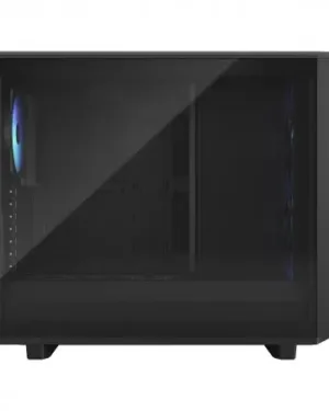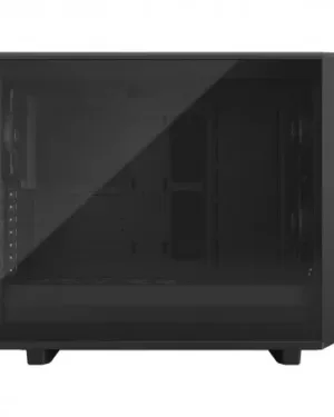 ‘Meshify 2 Nano Black TG Dark Tint*2627’ est un boîtier compact de couleur noire, avec une fenêtre en verre trempé teinté foncé.