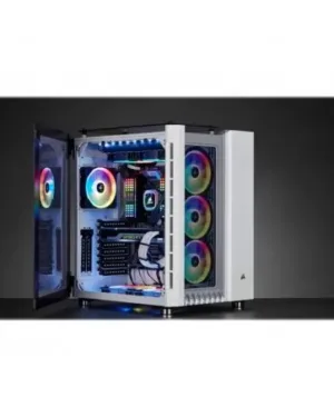 « BT CORSAIR CRYSTAL 680X RGB TG +Fen ATX CC-9011169-WW White* 2736 » est une tour PC avec fenêtre latérale en verre trempé et un design blanc.