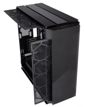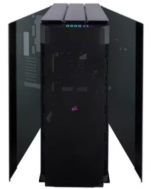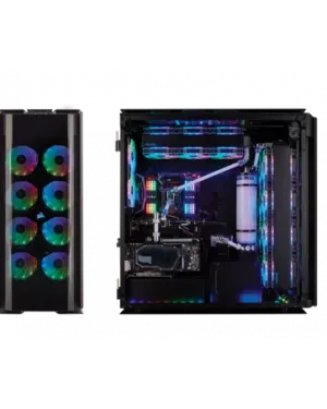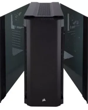 « BT CORSAIR Obsidian 1000D Prem.TP ATX *CC-9011148-WW* NOIR*6814 » est un boitier de grande tour avec une fenêtre en verre trempé, conçu pour les cartes mères au format ATX. Il est de couleur noire.