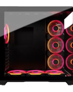 Moyen tour – ATX – E-ATX – MATX – MITX – 1 x USB 2.0 – 2 x USB 3.0 – Emplacements 2,5″ : 6 – Emplacements pour ventilateurs additionnels : 6 – 2 ventilateurs inclus – Orange – Sans Alim – Verre Trempe.