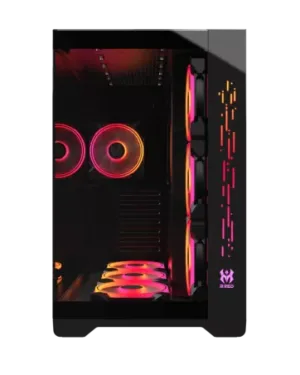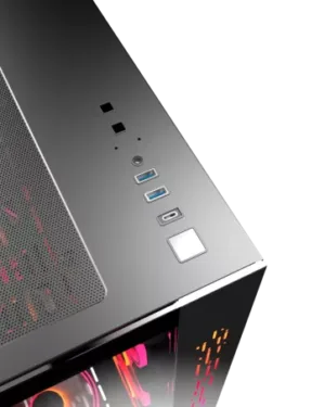 Moyen tour – ATX – E-ATX – MATX – MITX – 1 x USB 2.0 – 2 x USB 3.0 – Emplacements 2,5″ : 6 – Emplacements pour ventilateurs additionnels : 6 – 2 ventilateurs inclus – Noir – Sans Alim – Verre Trempe.