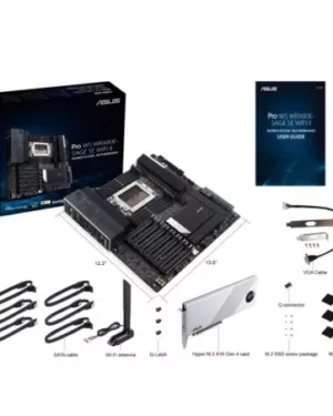L’ASUS PRO WS WRX80E-SAGE SE WIFI II est une carte mère haut de gamme conçue pour les professionnels. Elle dispose d’une connectivité Wi-Fi intégrée et de performances exceptionnelles, grâce à son chipset WRX80 et à son socket AMD sTRX4 compatible avec les processeurs AMD Ryzen Threadripper Pro. Cette carte mère offre une grande capacité de stockage, des options d’extension flexibles et une excellente fiabilité, ce qui en fait un choix idéal pour les utilisateurs exigeants.