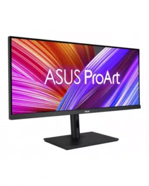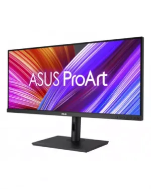 Il s’agit du moniteur ASUS PA348CGV de 34 pouces avec une résolution graphique IPS UW-QHD, un temps de réponse de 2 ms et un taux de rafraîchissement de 120 Hz. Il est doté de ports HDMI, DP et USB, ainsi que d’enceintes intégrées.