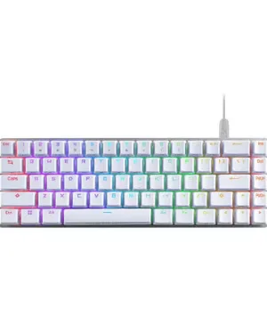 Le clavier ROG Falchion Ace White est un clavier gaming compact avec une connexion sans fil, conçu par ASUS Republic of Gamers (ROG). Il dispose de touches rétroéclairées RGB, d’une batterie longue durée et d’un format de 65%. Son design unique ajoute une touche d’élégance à votre installation gaming. Ce clavier est doté d’un repose-poignet magnétique amovible pour un confort optimal. Pratique et portable, le clavier ROG Falchion Ace White est idéal pour les joueurs qui recherchent une expérience de jeu sans compromis.