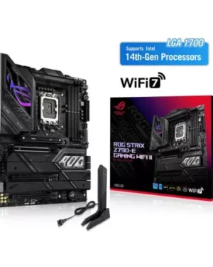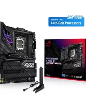 L’ASUS ROG STRIX Z790-E GAMING WIFI II est une carte mère haut de gamme conçue pour les joueurs. Elle offre une connectivité Wi-Fi intégrée ainsi que des caractéristiques avancées telles que la prise en charge du processeur Intel Core de 10e génération, des slots PCIe 4.0 et une mémoire DDR4 jusqu’à 4600 MHz. Elle est également équipée de la technologie d’éclairage RGB Aura Sync et d’un son amélioré grâce à la technologie SupremeFX S1220A. L’ASUS ROG STRIX Z790-E GAMING WIFI II offre une performance fiable et une multitude d’options de personnalisation pour une expérience de jeu optimale.