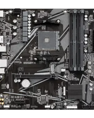 Le GIGABYTE B550M K est une carte mère de qualité supérieure conçue pour les amateurs de jeux et les utilisateurs de PC exigeants. Equipée d’une connectivité avancée, cette carte mère prend en charge les dernières générations de processeurs AMD Ryzen, offrant des performances exceptionnelles. Avec ses fonctionnalités haut de gamme telles que la prise en charge de la mémoire DDR4 et de l’USB 3.2 Gen 2, cette carte mère vous permettra de profiter d’une expérience de jeu fluide et d’une connectivité rapide. Robuste et fiable, le GIGABYTE B550M K est un choix idéal pour optimiser votre système et tirer le meilleur parti de votre PC.
