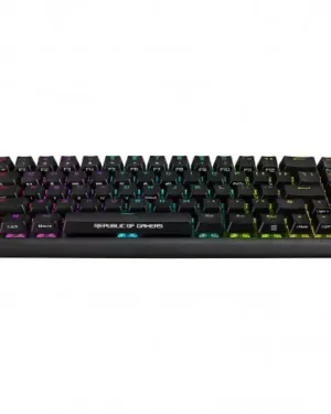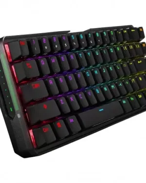 Clavier de jeu sans fil ROG Falchion avec touches mécaniques, rétroéclairage RGB, connectivité Bluetooth, batterie longue durée et design compact.