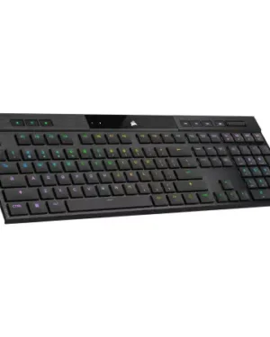 Le clavier CORSAIR K100 AIR WIRELESS est un clavier ultrafin avec rétroéclairage RGB LED et des touches Tac cherry.