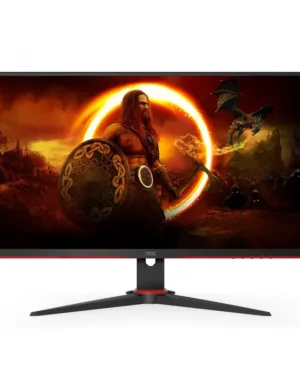 Le moniteur AOC 24G2SAE/BK est un écran VA de 23,6 pouces avec un temps de réponse de 1 ms et un taux de rafraîchissement de 165 Hz. Il est équipé de ports HP, VGA, HDMI et DP. Modèle : 9919.
