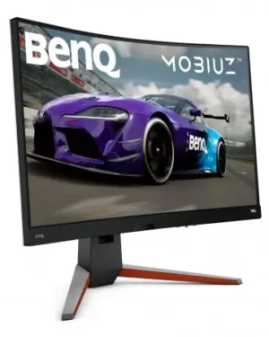 Moniteur BenQ EX3210R de 31,5 pouces avec résolution QHD et temps de réponse de 1 ms. Il est équipé des ports HDMI et DP, et utilise la technologie IPS. Référence : 9H.LKALB.QBE-6335.