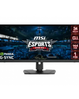 Le moniteur MSI LED Optix MPG341QR est un écran de 34 pouces avec une résolution UWHQ. Il comprend des connecteurs HDMI et DP.