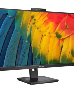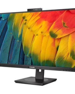 Moniteur Philips 27″ IPS 4ms avec webcam, 75Hz, compatible HDMI, DisplayPort, et USB, et d’une résolution de 2560 x 1440 pixels.