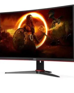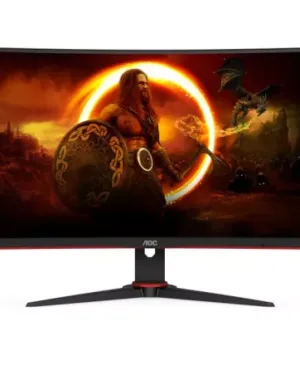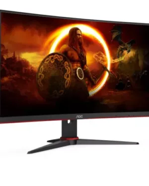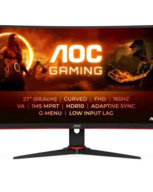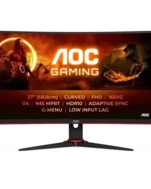 Moniteur AOC incurvé 27 pouces C27G2E/BK avec technologie VA, temps de réponse de 4 ms, fréquence de rafraîchissement de 165 Hz et connecteurs D-SUB/HDMI/DP. Le prix est de 1300 euros.