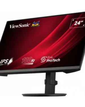 Écran ViewSonic 24″ Multi VG2408A IPS avec ports VGA, HDMI, DisplayPort, USB et haut-parleurs intégrés.