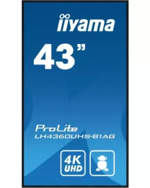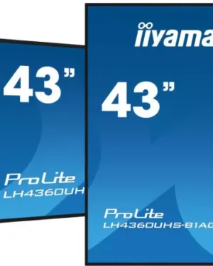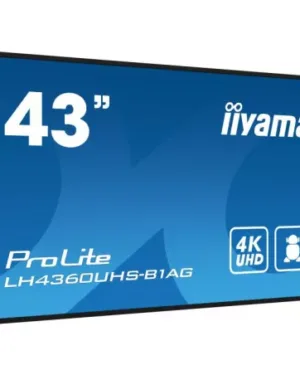 Moniteur iiyama 43 pouces LH4360UHS-B1AG 4K UHD 8ms VA avec 3 ports HDMI, 2 ports USB et connectivité RS-232C. Prix : 2295 €.