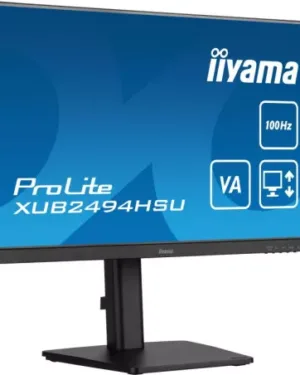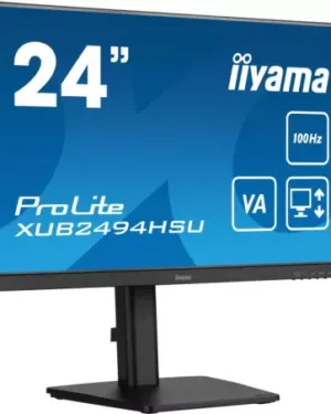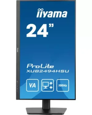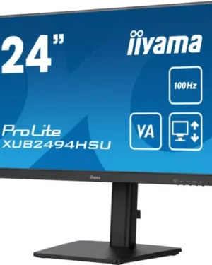 Moniteur Iiyama 24″ XUB2494HSU-B6, technologie VA, connectique HDMI, DisplayPort, haut-parleurs intégrés, ports USB, temps de réponse de 1ms, pied réglable.