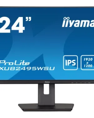 Le moniteur Iiyama 24″ IPS XUB2495WSU-B5 dispose de ports HP, VGA, HDMI, DP et USB, avec un temps de réponse de 5ms. Prix : 1496€.