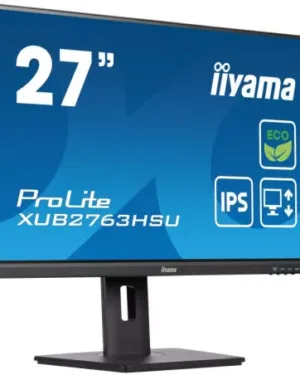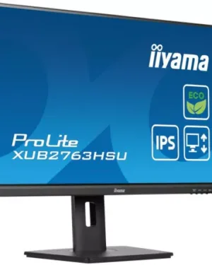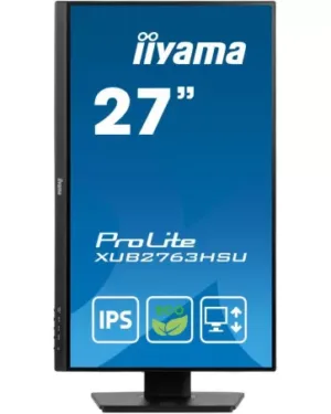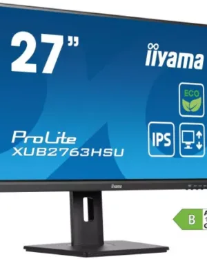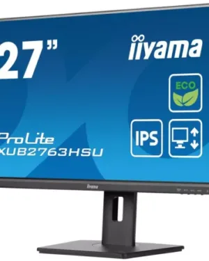 Moniteur IIYAMA 27″ IPS XU2763HSU-B1 avec ports HDMI, DisplayPort, 2 ports USB, fonction pivot et certification Green Product. Résolution de 3780 pixels.