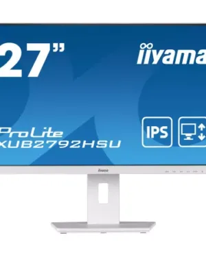 Le moniteur IIYAMA 27″ IPS *XUB2792HSU-W5* est doté de ports HP/VGA/HDMI/DP/USB-HUB. Il est de couleur blanc. Le numéro du modèle est *1304*.