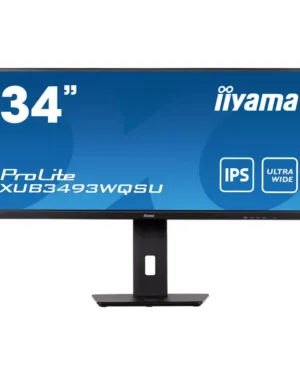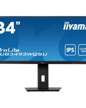 Le moniteur IIYAMA 34″ LED est un modèle multi-XUB3493WQSU-B5 avec une technologie d’affichage à cristaux liquides IPS et un temps de réponse de 4ms. Il est doté de connexions HDMI et DP, ainsi que d’un pied réglable. Son prix est de 1359 euros.