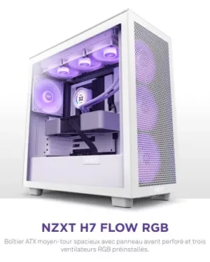 Le NZXT BT H7 Flow RGB White (CM-H71FW-R1) est un produit polyvalent doté d’une conception élégante et d’un éclairage RGB attractif. Avec ses caractéristiques avancées, ce produit offre un flux d’air efficace et une performance de refroidissement exceptionnelle. Le design blanc épuré et les lumières RGB personnalisables en font un choix parfait pour les amateurs de PC à la recherche d’un boîtier unique et attrayant.