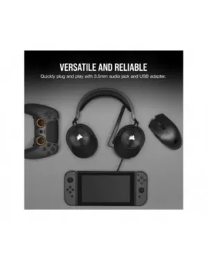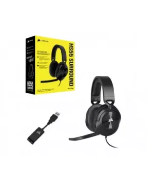 Le casque de jeu CORSAIR HS55 SURROUND en carbone *CA-9011265-EU* 3708 offre une expérience de jeu immersive avec un son surround. Il est doté d’un design élégant en carbone et est compatible avec diverses plateformes de jeu.