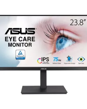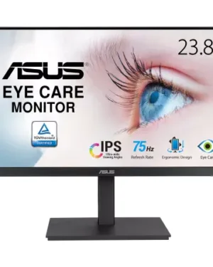 MONITEUR ASUS 24″ *VA24EQSB* est un écran d’ordinateur polyvalent idéal pour les tâches de bureau. Avec sa technologie IPS et sa résolution Full HD, il offre une qualité d’image exceptionnelle. Sa rapidité de réponse de 5 ms et son taux de rafraîchissement de 75 Hz garantissent une expérience fluide. Ce moniteur est équipé de ports VGA, HDMI, DP et USB, offrant une connectivité facile avec vos appareils. Il est également livré avec des haut-parleurs intégrés pour une immersion sonore.