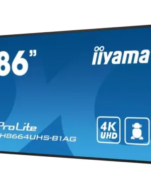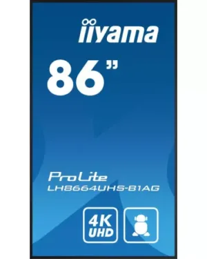 Moniteur IIYAMA 86 pouces LH8664UHS-B1AG 4K UHD IPS avec 3 ports HDMI, VGA, et DisplayPort. Temps de réponse de 8 ms.