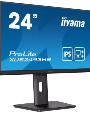 Il s’agit du moniteur IIYAMA de 24 pouces, modèle XUB2493HS-B5, équipé d’une technologie IPS offrant une résolution UltraMin et un temps de réponse de 4 ms. Il est doté des ports HDMI et DisplayPort, ainsi que d’un haut-parleur. Le moniteur peut être ajusté grâce à son pied réglable.