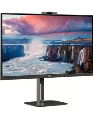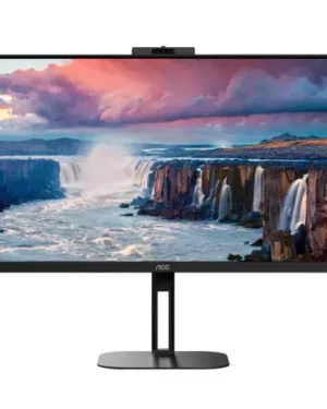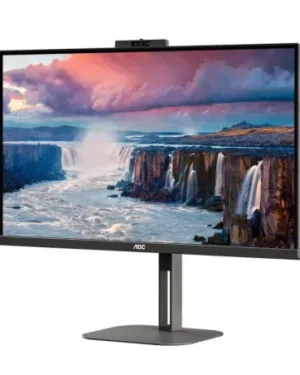 Moniteur AOC 27″ Q27V5CW/BK IPS 75 Hz 4 ms avec haut-parleurs intégrés, connecteurs HDMI, DP, USB et USB-C, et webcam.