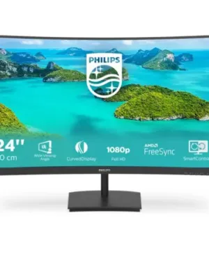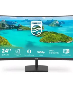 Le moniteur Philips 24″ *241E1SCA/00* est un écran incurvé VA avec un temps de réponse de 4ms et une fréquence de rafraîchissement de 75Hz. Il dispose de connectivités HDMI et D-SUB.