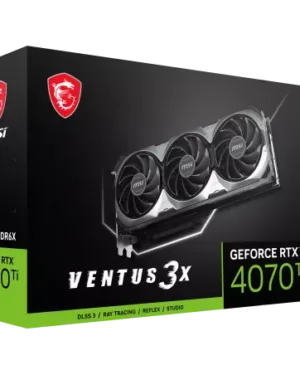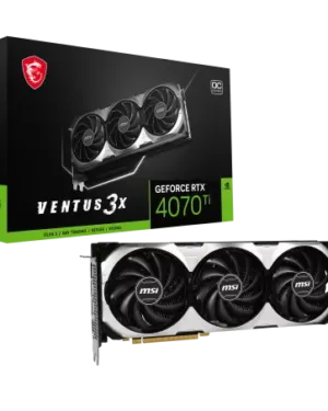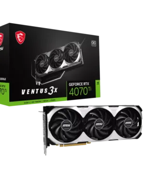Le MSI RTX 4070Ti VENTUS 3X 12G OC est une carte graphique avec une puissance de traitement améliorée et une mémoire de 12Go. Elle est dotée de la technologie de refroidissement VENTUS 3X pour des performances optimales pendant les sessions de jeu prolongées.