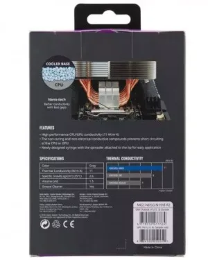 Le Cooler Master MasterGel Maker est une pâte thermique de haute performance, conçue pour améliorer le transfert thermique entre le processeur et le refroidisseur. Compatible avec une large gamme de sockets de processeurs, cette pâte thermique offre une conductivité thermique exceptionnelle et une résistance thermique minimale. Elle assure ainsi un refroidissement efficace et une température optimale pour votre processeur.