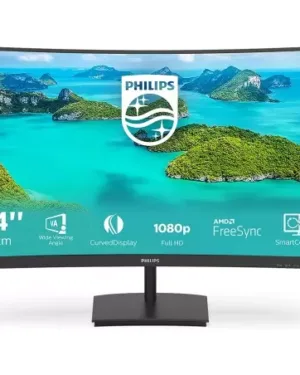 Le moniteur Philips 24″ *241E1SC/00* offre un écran incurvé VA de 4 ms avec une fréquence de rafraîchissement de 75 Hz. Il est doté de connexions HDMI et D-SUB. *8417.