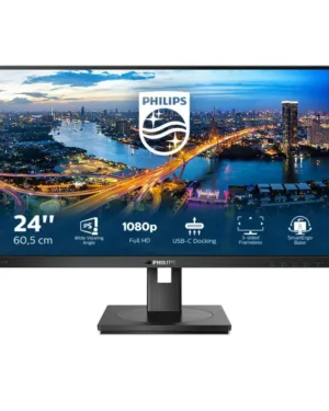 Moniteur Philips 24″ IPS avec fréquence de rafraîchissement de 75 Hz et temps de réponse de 4 ms. Comprend des haut-parleurs ainsi que des ports HDMI et DisplayPort. Modèle *243B1/00*3275.