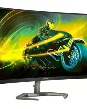 Moniteur Philips 31,5″ 32M1C5500VL/00, courbé, avec technologie VA pour un temps de réponse de 4 ms et une fréquence de rafraîchissement de 165 Hz. Il est équipé de ports HDMI et DP pour une connectivité facile.