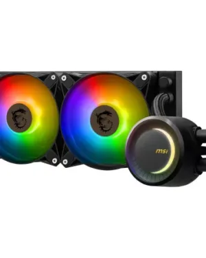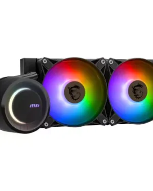 La MSI MAG CORELIQUID E240 est une solution de refroidissement liquide tout-en-un qui offre des performances thermiques exceptionnelles. Ce système de refroidissement est doté d’un radiateur de 240 mm et de deux ventilateurs PWM de 120 mm, assurant une dissipation efficace de la chaleur. Il est équipé d’une pompe à eau silencieuse et d’un bloc de refroidissement hautement fiable pour assurer une excellente performance et une durabilité à long terme. La MSI MAG CORELIQUID E240 est compatible avec une large gamme de sockets de processeur, offrant une solution de refroidissement idéale pour les joueurs et les utilisateurs exigeant des performances de refroidissement optimales. Grâce à son design élégant et à son éclairage LED RGB personnalisable, cette solution de refroidissement apporte également une esthétique exceptionnelle à votre configuration PC.