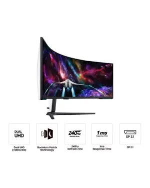 Le moniteur Samsung Odyssey G9 est un modèle de 57 pouces avec un écran DWQHD VA au format 32:9. Il offre un taux de rafraîchissement de 240 Hz pour une expérience de jeu fluide. porte la référence *LS57CG952NUXEN*2252.