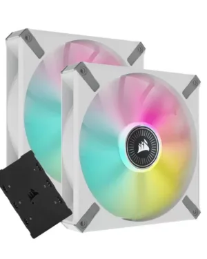 CORSAIR ML 140 RGB ELITE 140mm BLANC DUAL PACK*CO-9050119-WW*0141 est un pack de deux ventilateurs de 140mm, de couleur blanche, avec éclairage RGB. Il est fabriqué par la marque CORSAIR.