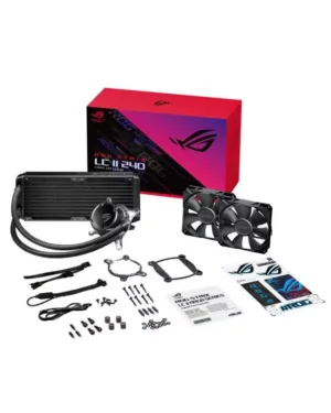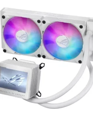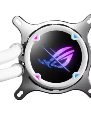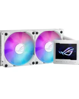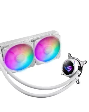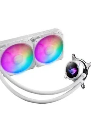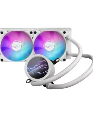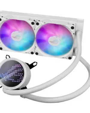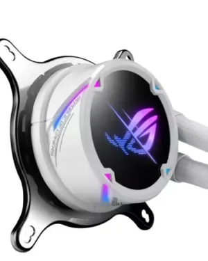 Refroidisseur liquide ASUS ROG STRIX LC II 240 ARGB WE pour un refroidissement efficace et un éclairage RGB personnalisable.