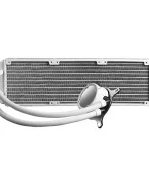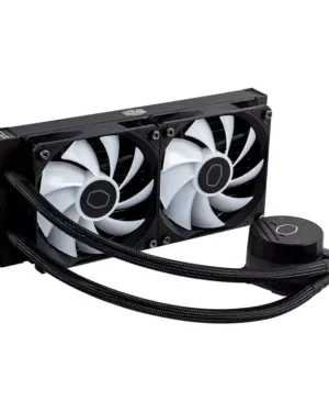 Le Cooler Master MasterLiquid 240L Core est un système de refroidissement liquide à double radiateur pour PC, conçu pour maintenir des températures optimales et assurer un fonctionnement silencieux. Il est doté d’une pompe robuste, de tuyaux souples et d’un ventilateur haute performance pour une dissipation thermique efficace.