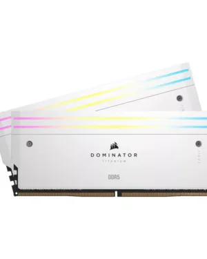 ‘MEM D5 6000 32G(2x16G)CORSAIR DOM. TITANIUM White Heat.*CMP32GX5M2B6000C30W*4337’ est un kit de mémoire de 32 Go (2×16 Go) Corsair Dominator Platinum avec une fréquence de 6000 MHz. La couleur est blanc chaud. Le numéro de modèle est CMP32GX5M2B6000C30W.