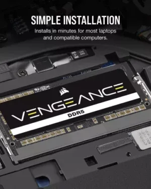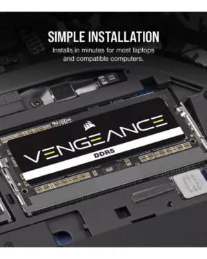 ‘CORSAIR VENGEANCE SODIMM DDR5 4800 16G (1x16G) CORSAIR *CMSX16GX5M1A4800C40* Vg’ est une barrette de mémoire CORSAIR VENGEANCE SODIMM DDR5 4800 de 16 Go (1×16 Go) avec le numéro de modèle *CMSX16GX5M1A4800C40* Vg.